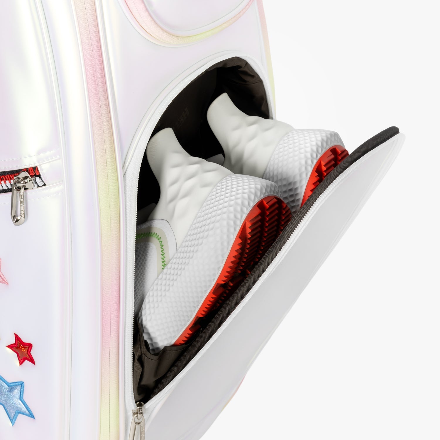 6 way full-length golf club organizer enables easy classification of clubs and protects clubs from damage.