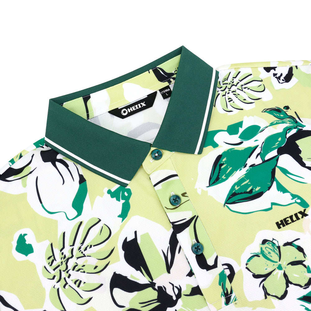 Stay cool and stylish with our breathable polo shirt, expertly crafted from mini-check jacquard fabric with advanced moisture-wicking and quick-drying properties. Featuring a lightweight, ultrasoft texture, it delivers exceptional breathability for a fresh, comfortable wear all day long. The timeless Hawaiian-inspired print adds vibrant tropical flair, making it ideal for both outdoor adventures and effortless casual styling.