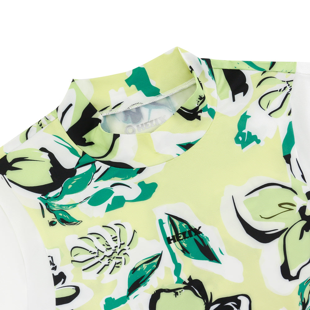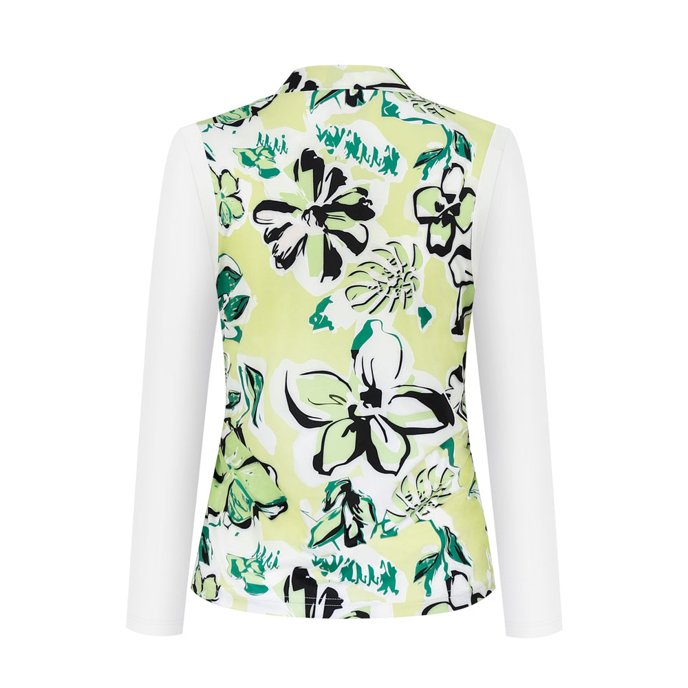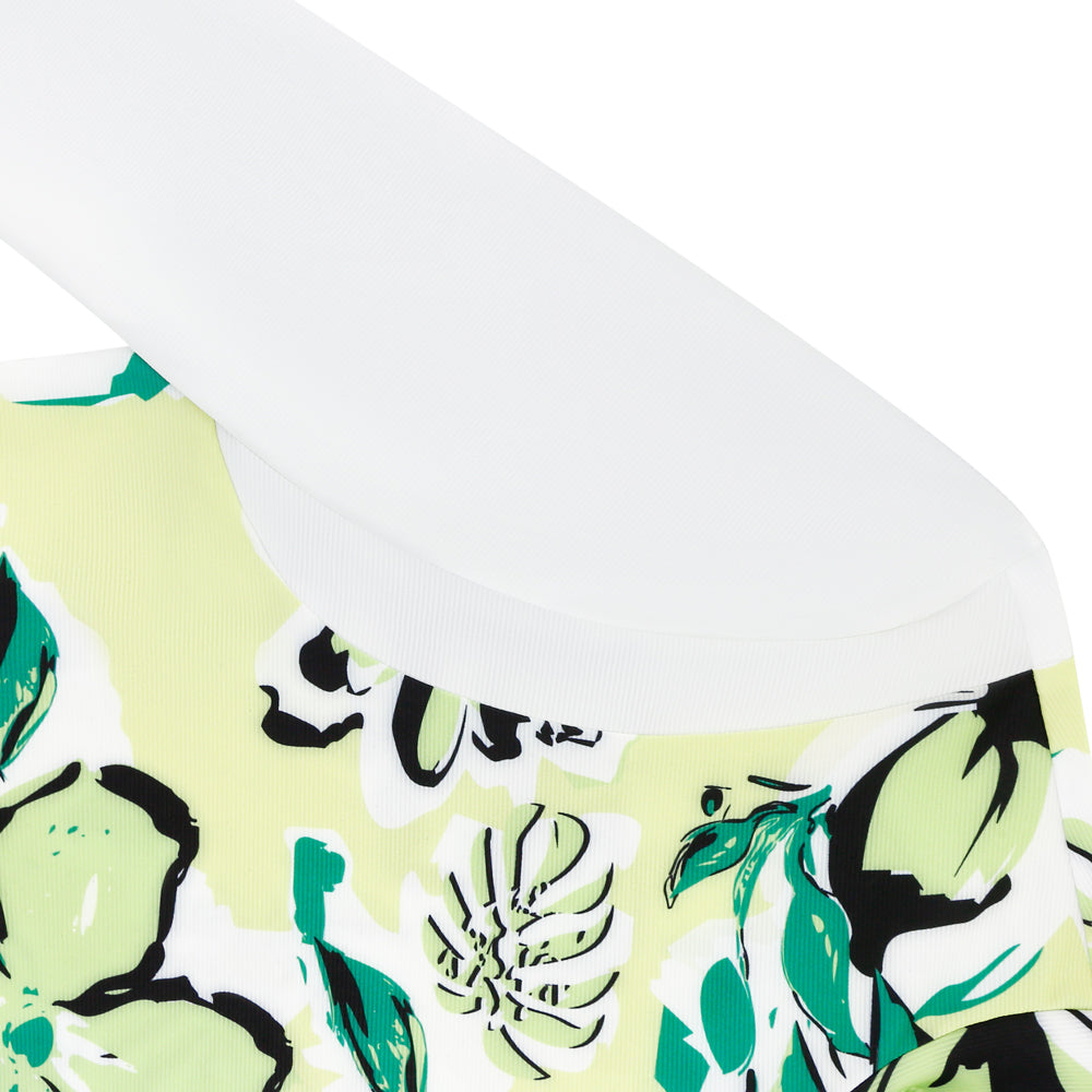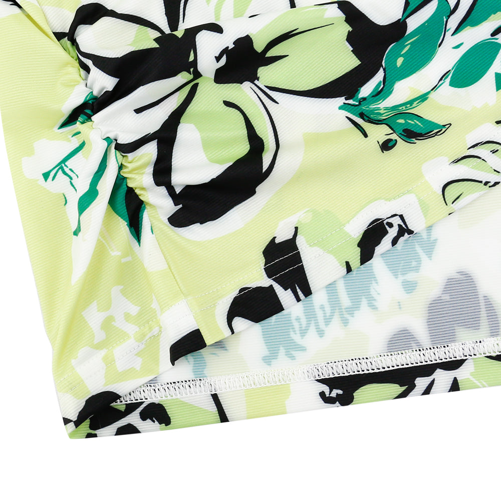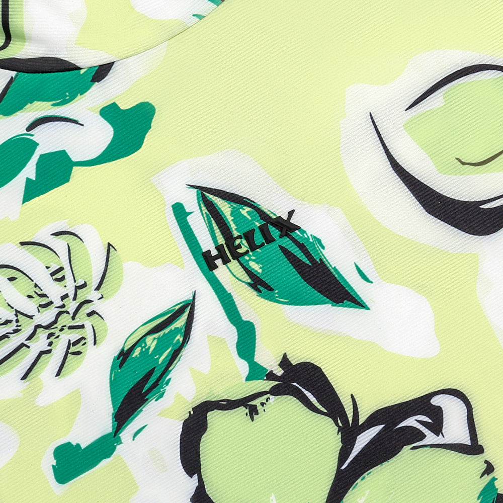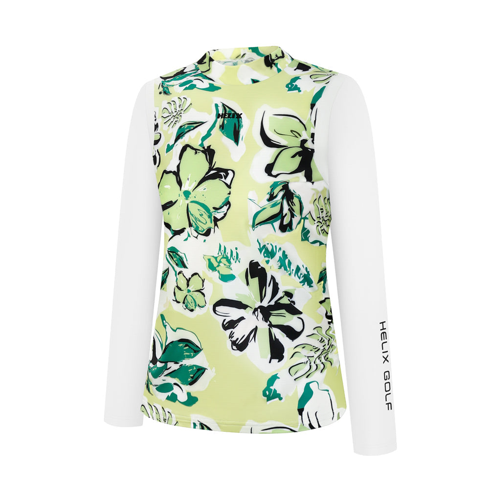 This long-sleeved T-shirt features a fresh and natural design that balances comfort and style. The body of the shirt is adorned with a classic Hawaiian-style print, while the sleeves are accented with contrasting colors. The fabric is lightweight, soft, and stretchy, making it suitable for everyday casual wear as well as outdoor activities.